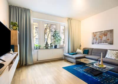 Die Umgebung ist geprägt von liebevoll sanierten Altbauten, die dem Viertel seinen besonderen Charme verleihen. Der benachbarte Innenhafen sorgt mit seiner modernen Gastronomieszene direkt am Wasser, hochkarätigen Museen und großzügigen Spazierwegen regelmäßig für ein besonderes Freizeit- und Urlaubsfeeling.